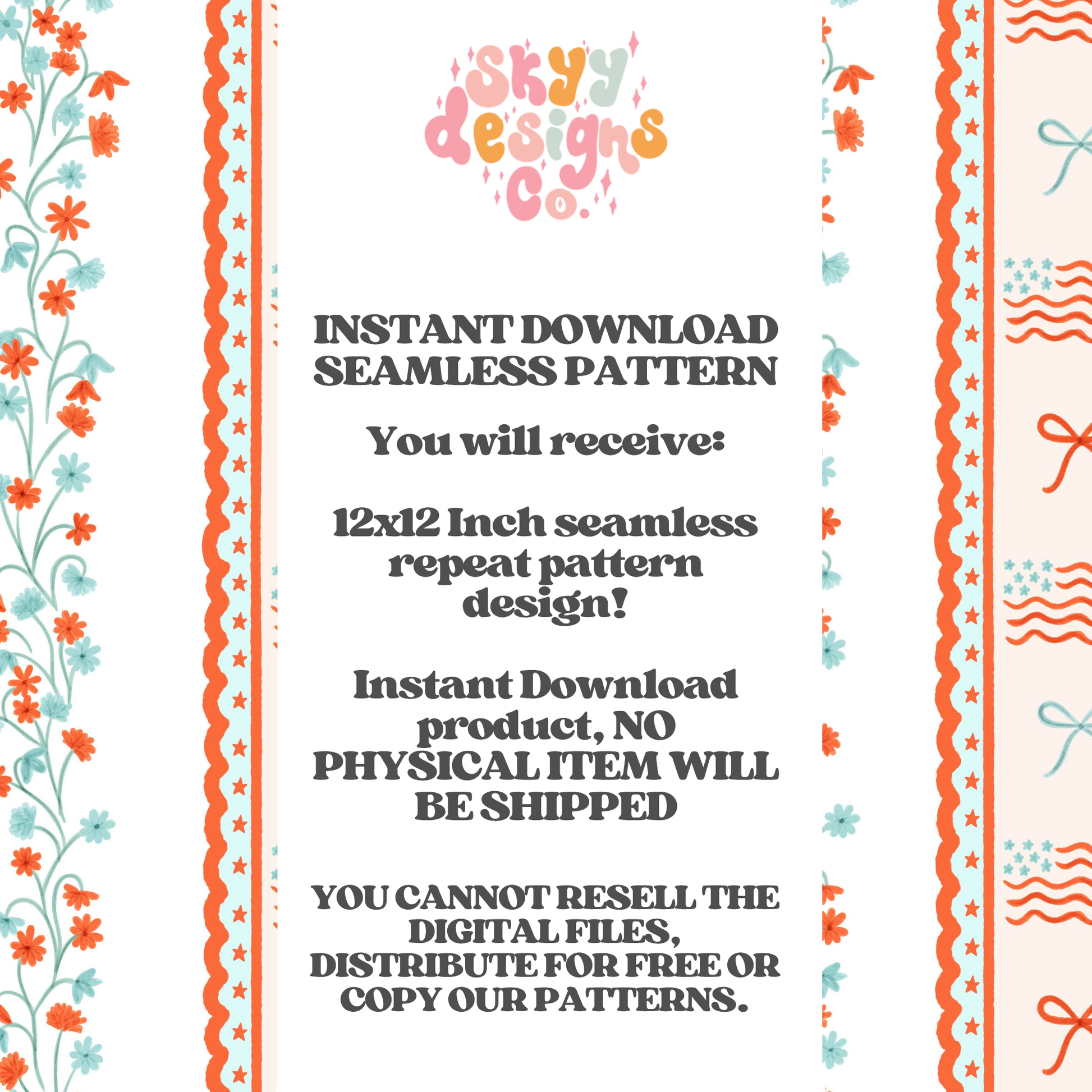 Celebrate independence with this stunning floral patriotic stripe digital seamless pattern. Perfect for the holiday season, this versatile design combines vibrant florals, classic stripes, and flag elements in a cohesive stripe style. Download instantly and apply to any product—apparel, home décor, accessories, and more.