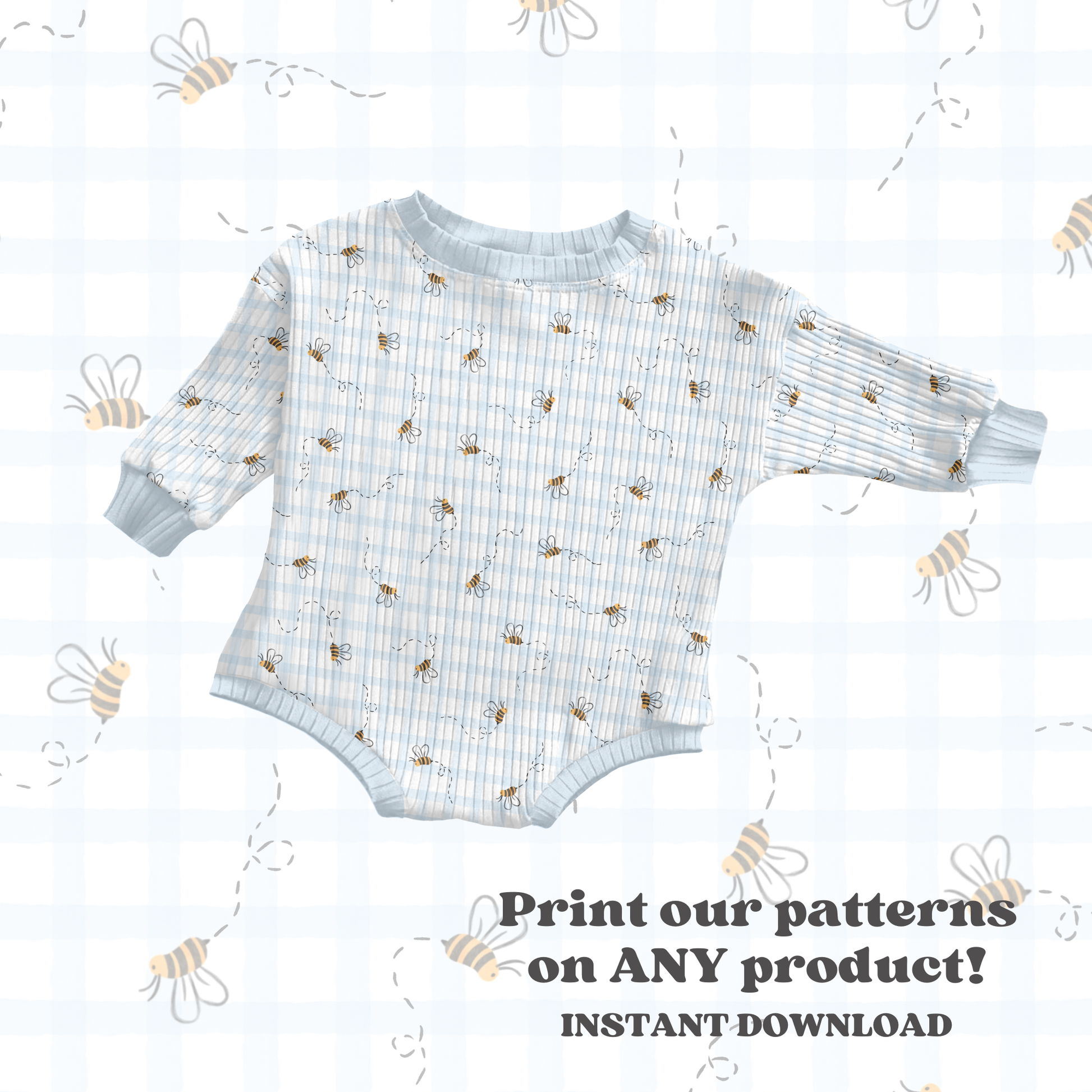 Bring springtime joy to your designs with this sweet gingham bumble bees pattern. Delicate watercolor bees are beautifully paired with a crisp blue gingham background, perfect for both boys' and girls' projects. Download right away and apply this seamless design to apparel, home items, gifts, and beyond. Start creating custom spring products instantly.