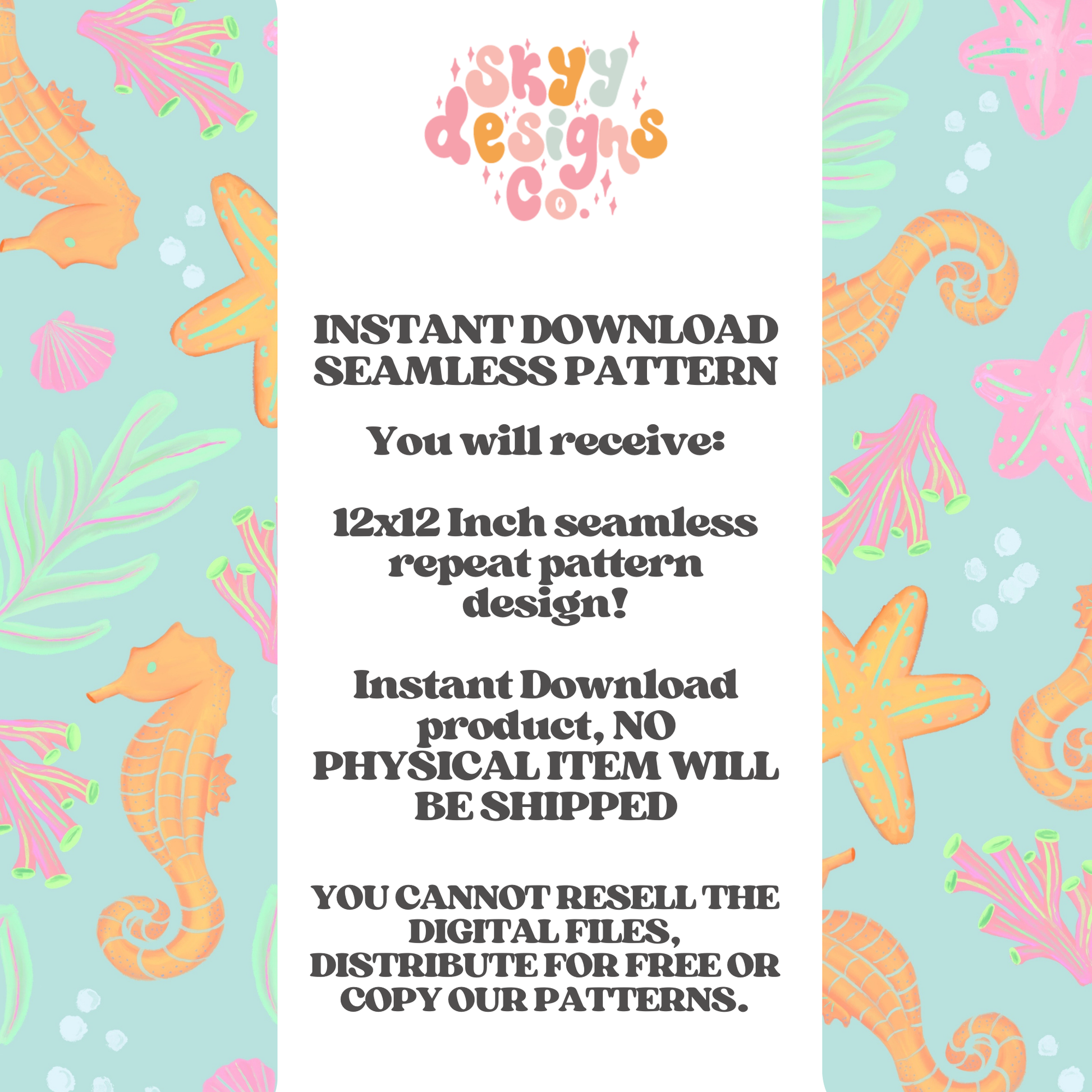Dive into summer with this vibrant pastel sea horse digital seamless pattern design. Instantly downloadable and ready to apply to any product, this cheerful design features bright corals, sea horses, sea weed, and bubbles. Perfect for creating eye-catching kids' summer essentials like swimsuits, beach towels, and more. Bring coastal charm to your product line with this versatile, ready-to-use pattern that captures the joy of seaside adventures.