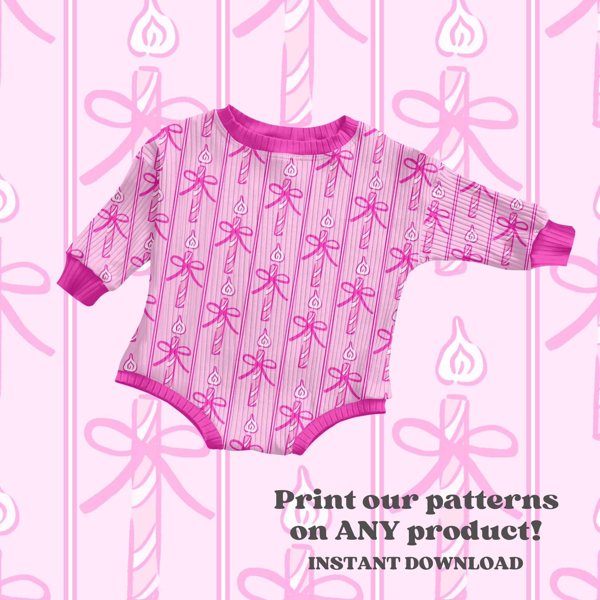 Celebrate in style with this charming Girly Birthday Candles digital seamless pattern. Perfect for adding festive flair to any product, this design features playful candles, delicate bows, and cheerful stripes. Download instantly and start customizing—ideal for party invitations, gift wrap, apparel, and more.