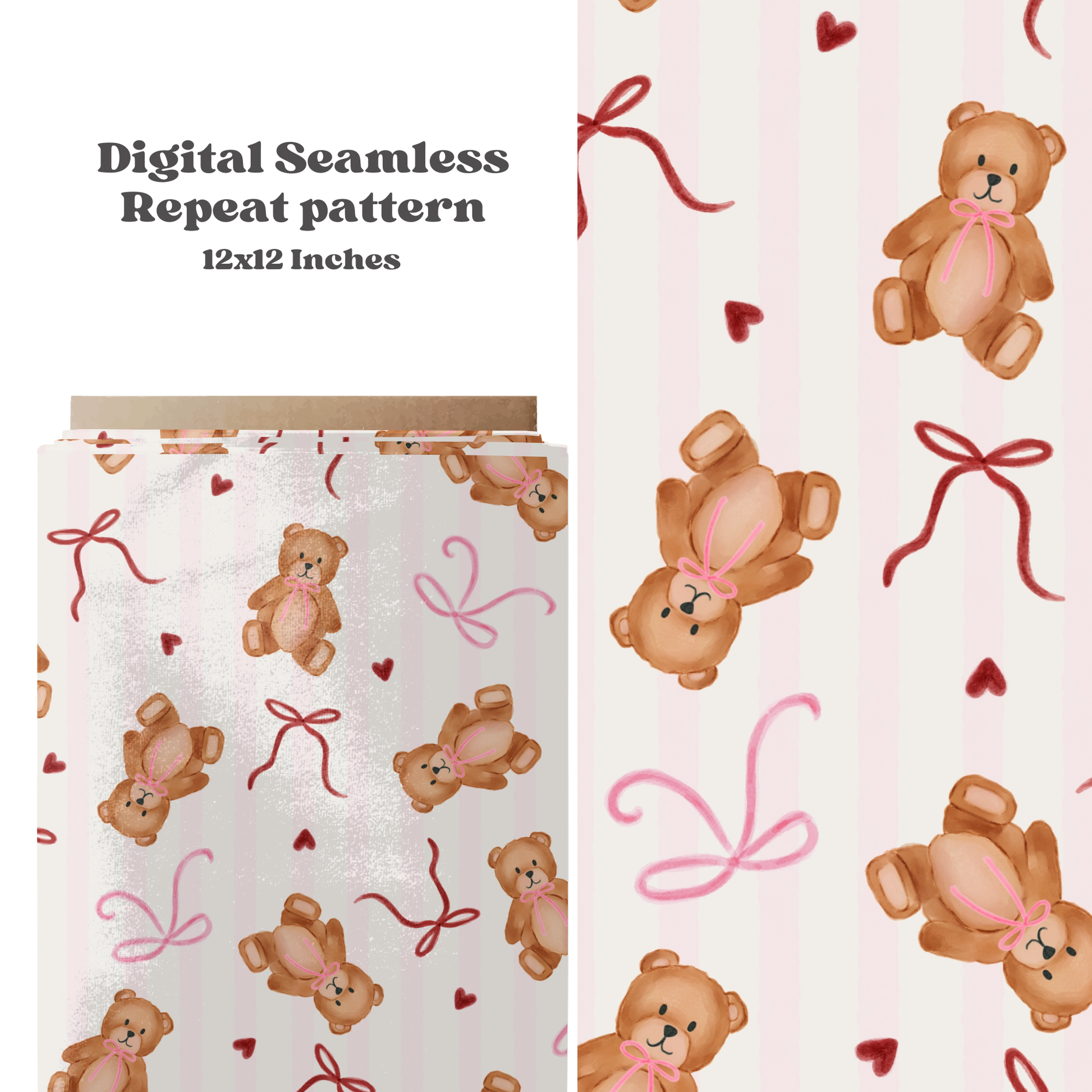 Get instant access to this charming Neutral Valentine Bears digital seamless pattern. Download immediately and use on any product—apparel, home goods, packaging, stationery, and more. The soft, neutral color palette works perfectly for Valentine's Day theme collections.
