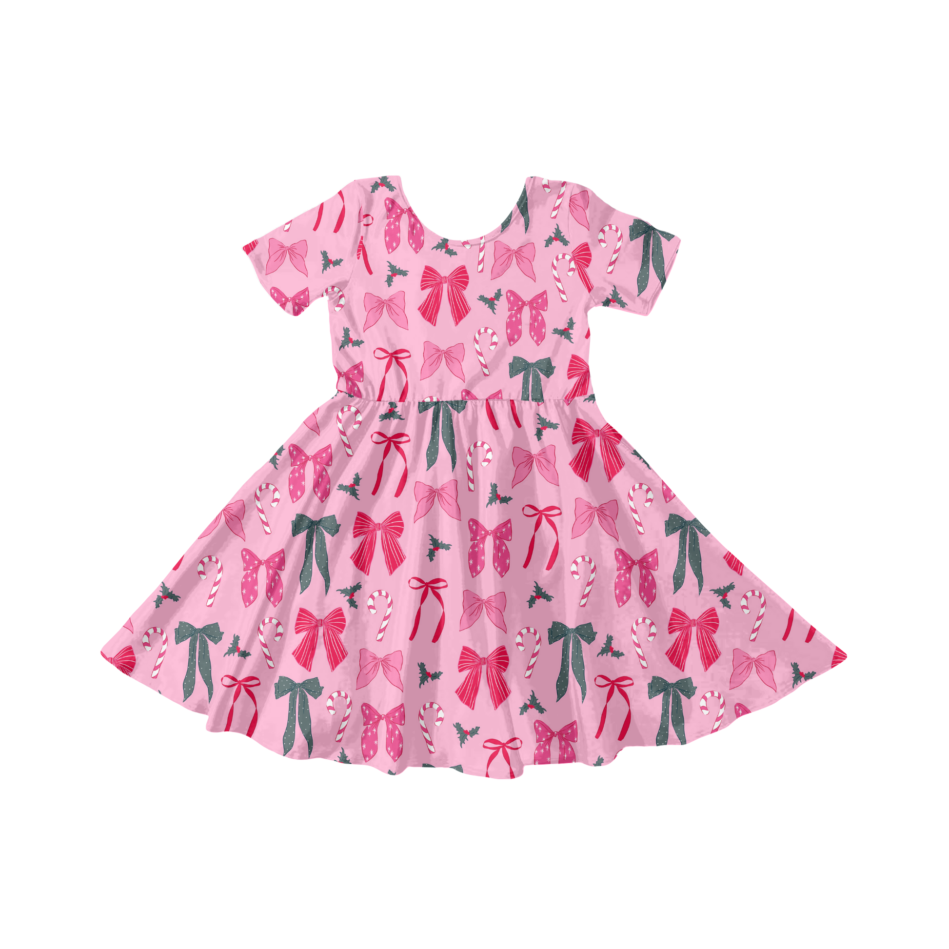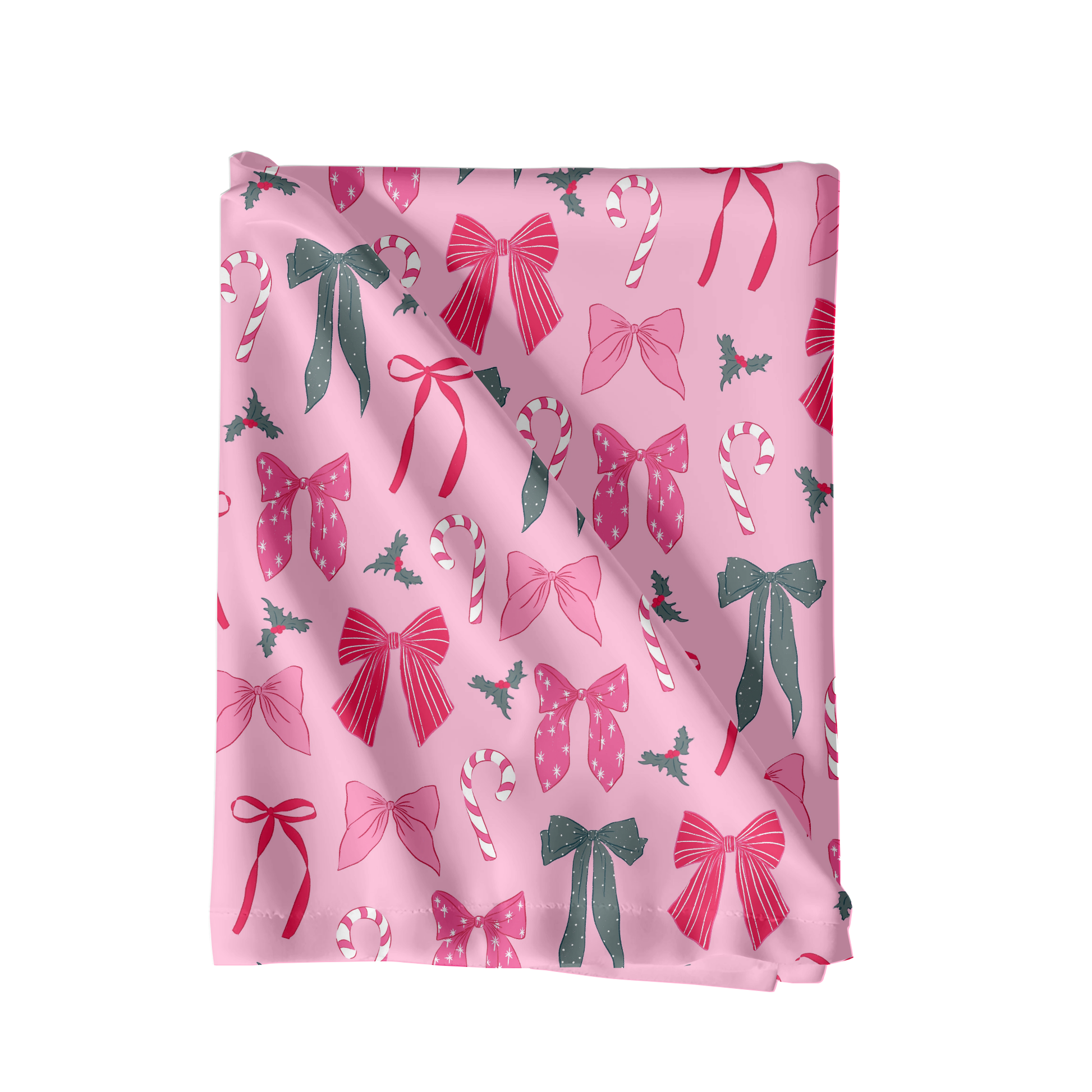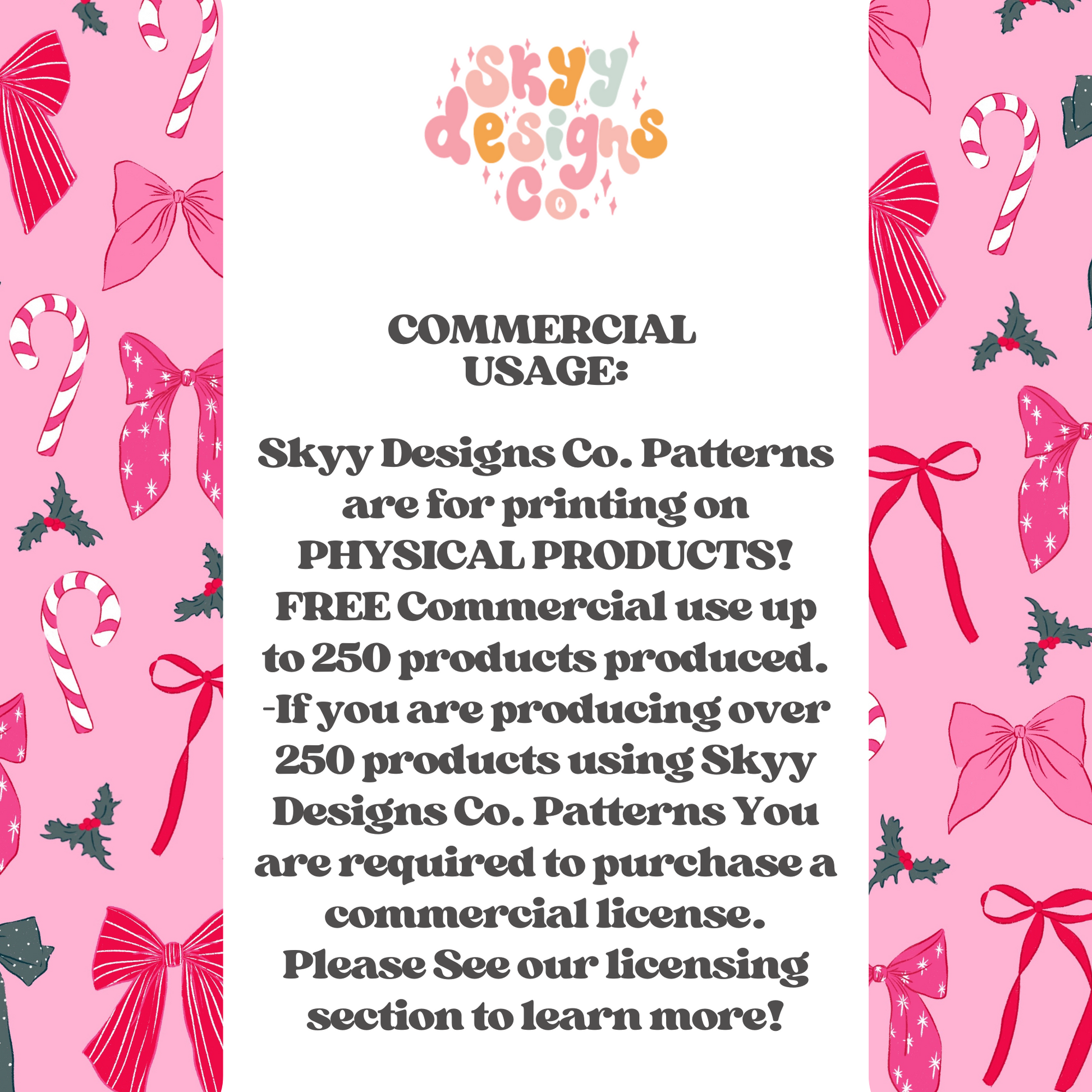 This Preppy Christmas Bows seamless pattern in JPEG format features charming bows, candy canes, and mistletoe, perfect for adding a festive touch to any holiday-themed product.
