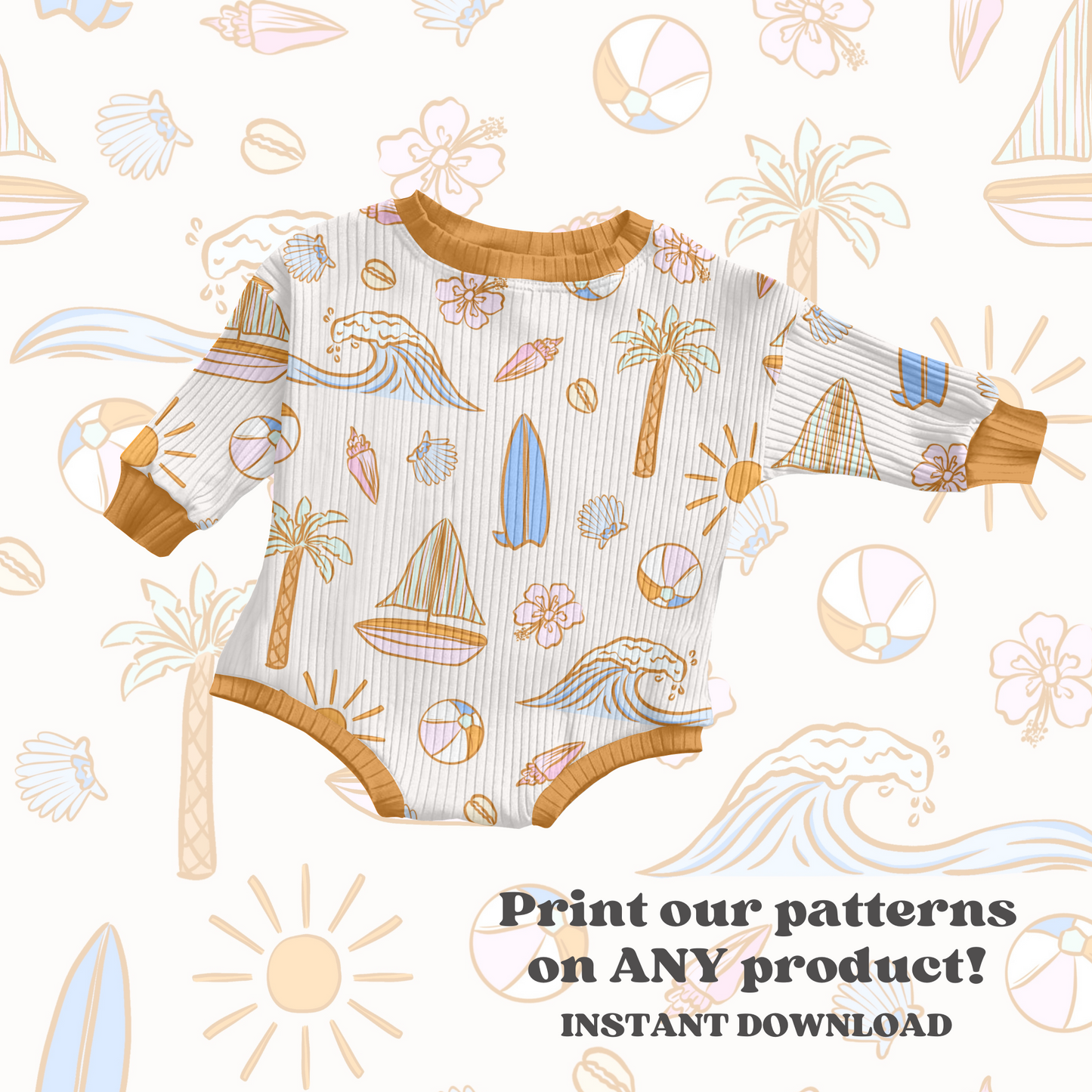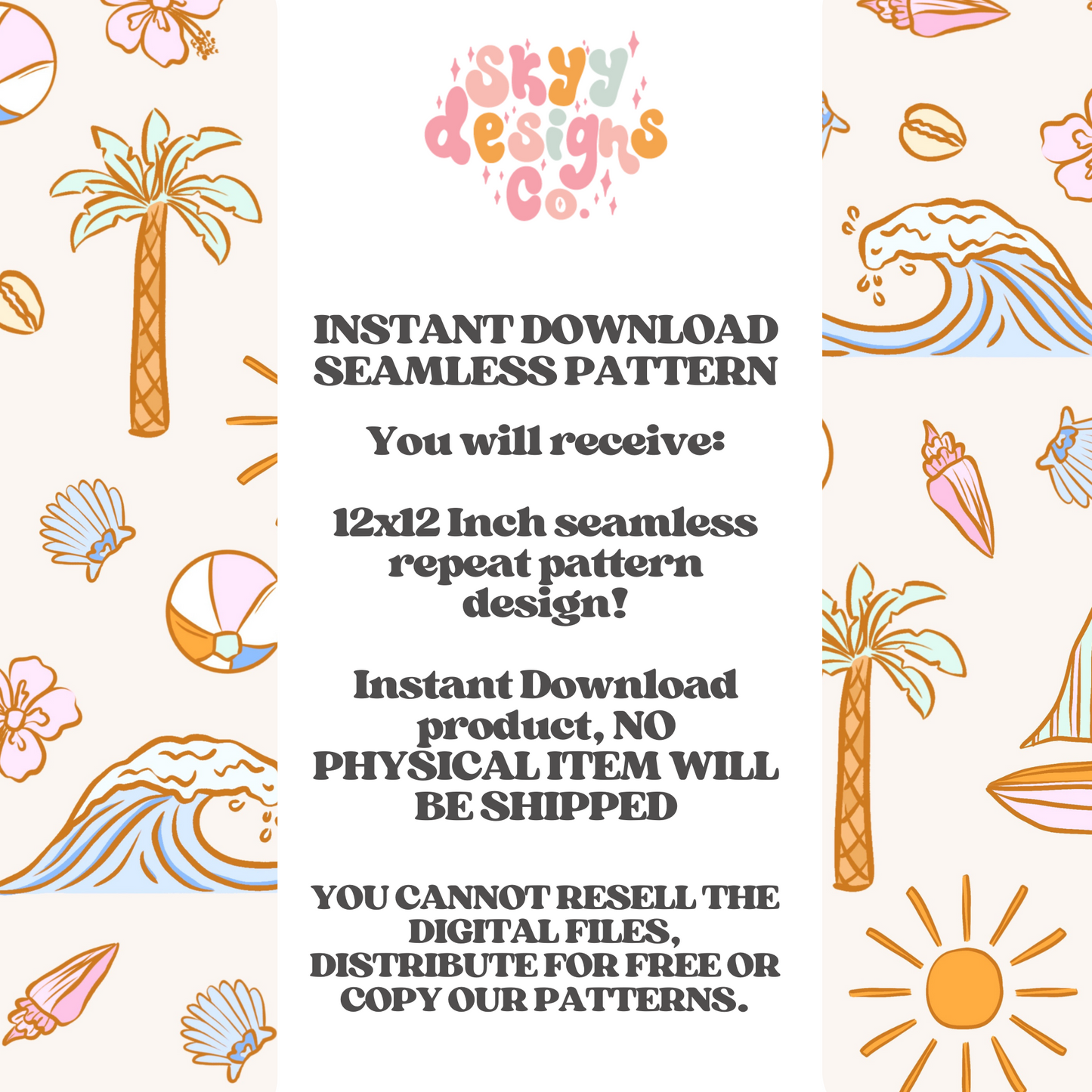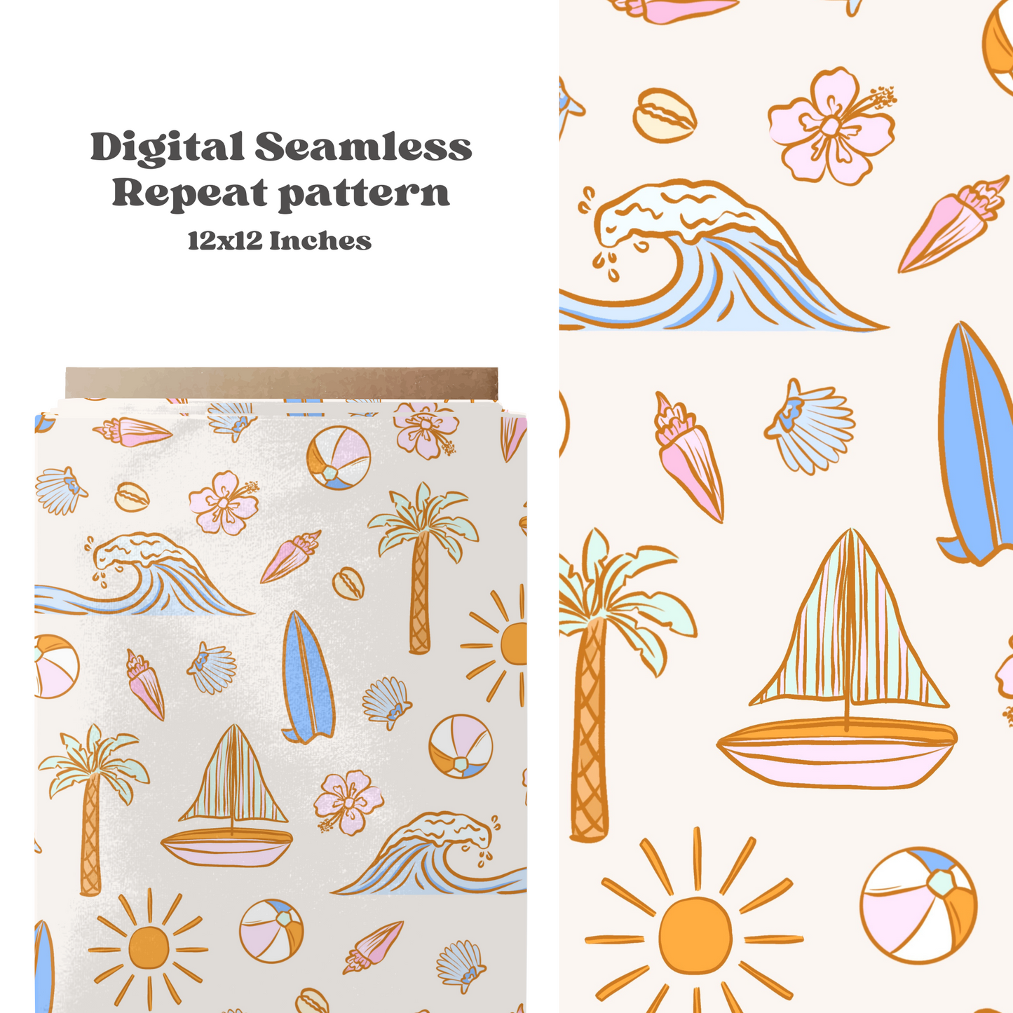 Elevate your products with our Pastel Trendy Beach Pattern. This seamless repeat design in JPEG format is perfect for printing on any item, adding a touch of summer charm. Stand out with our digital download and make a statement with this versatile pattern.