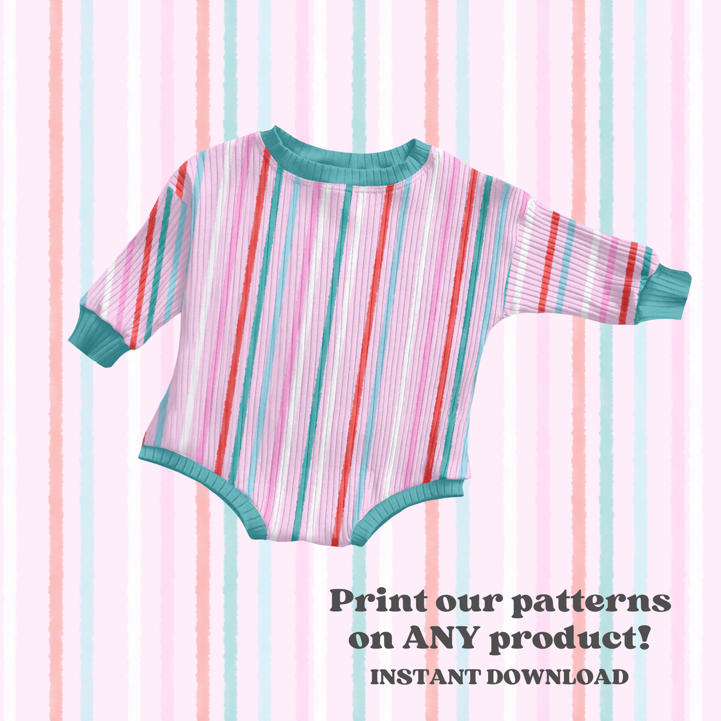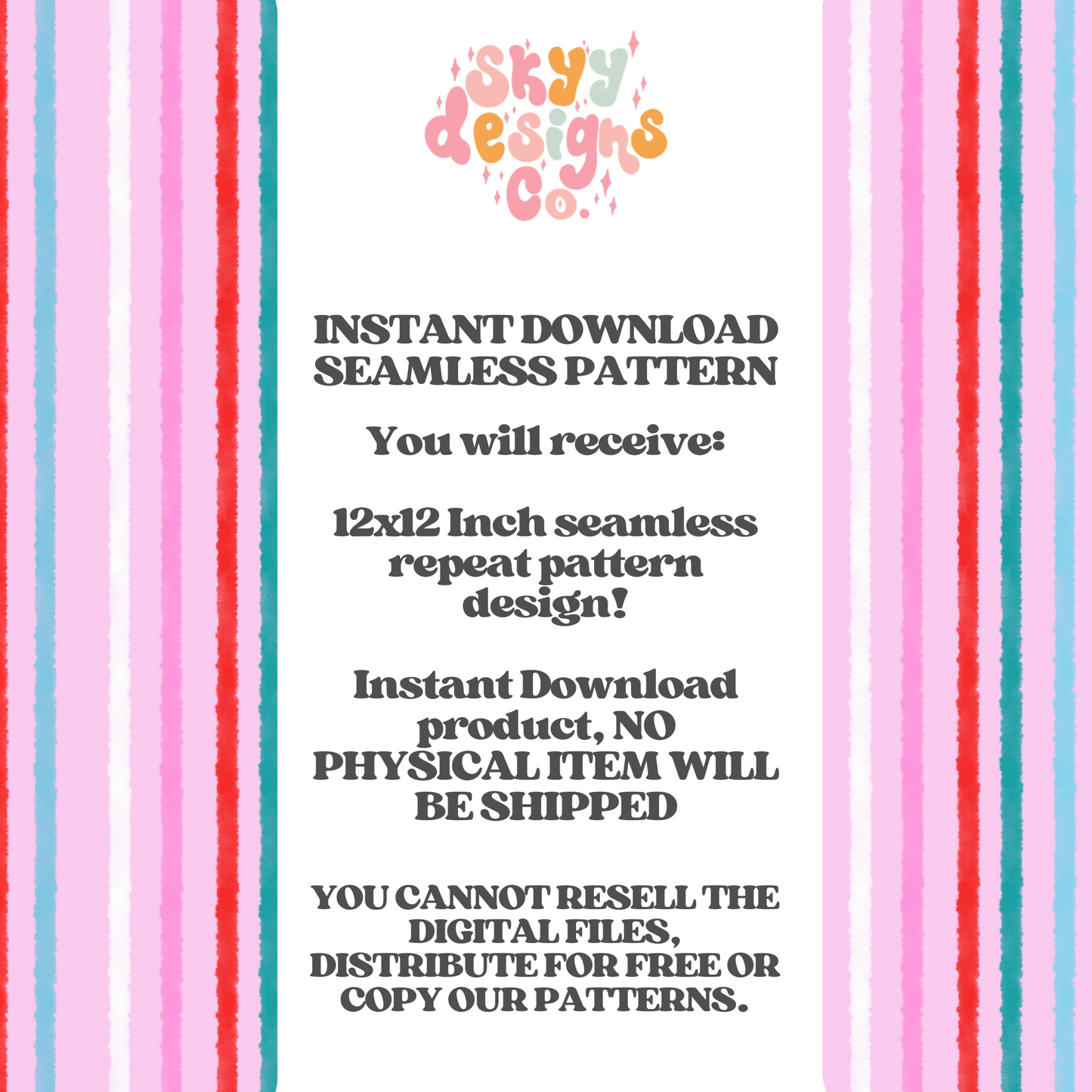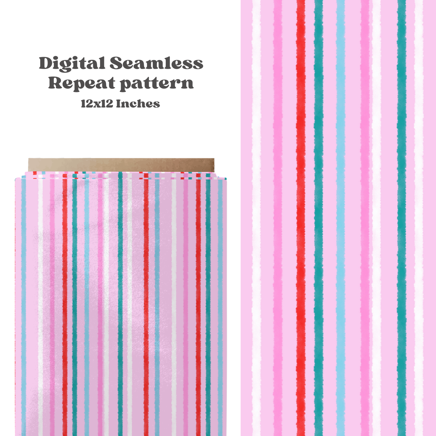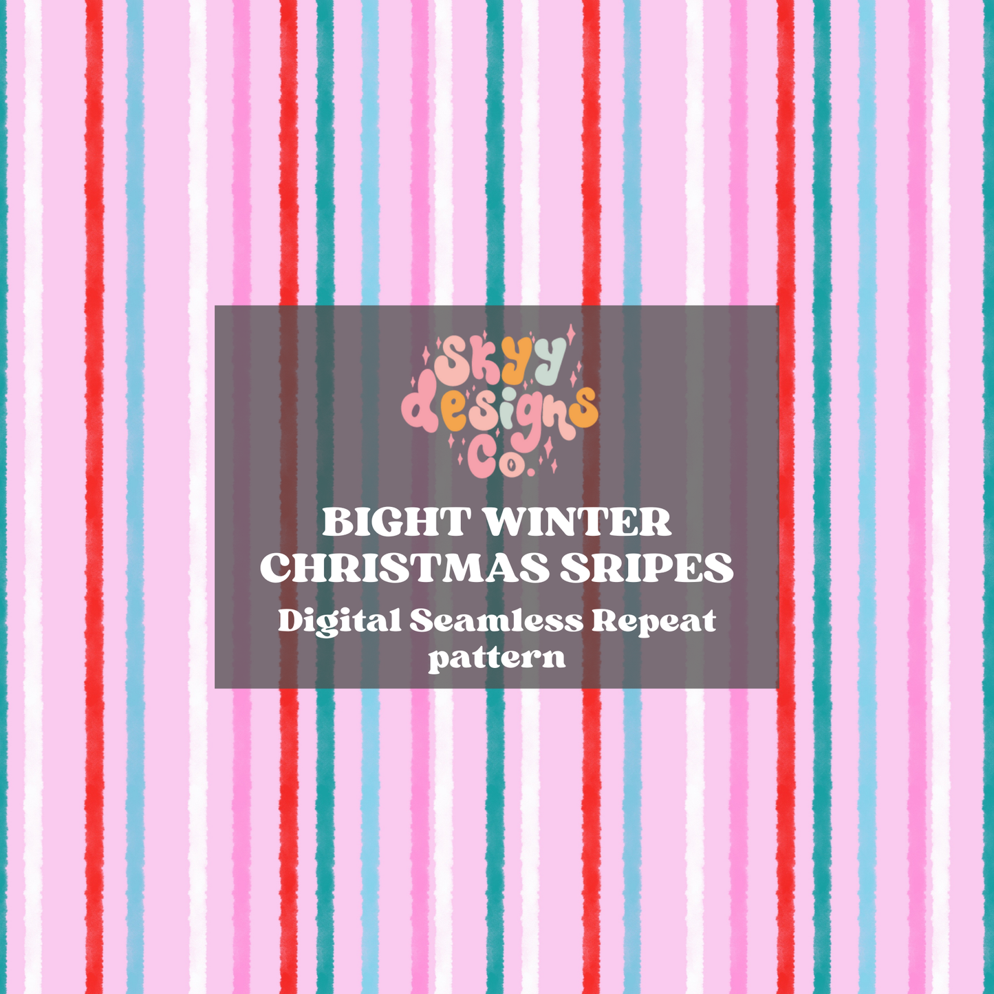 This bright winter Christmas stripes pattern is the perfect addition to any holiday project. With a digital seamless design in JPEG format, you can instantly download and apply it to fabrics, wrapping paper, and more. Add a festive touch to your creations with this versatile and eye-catching pattern.