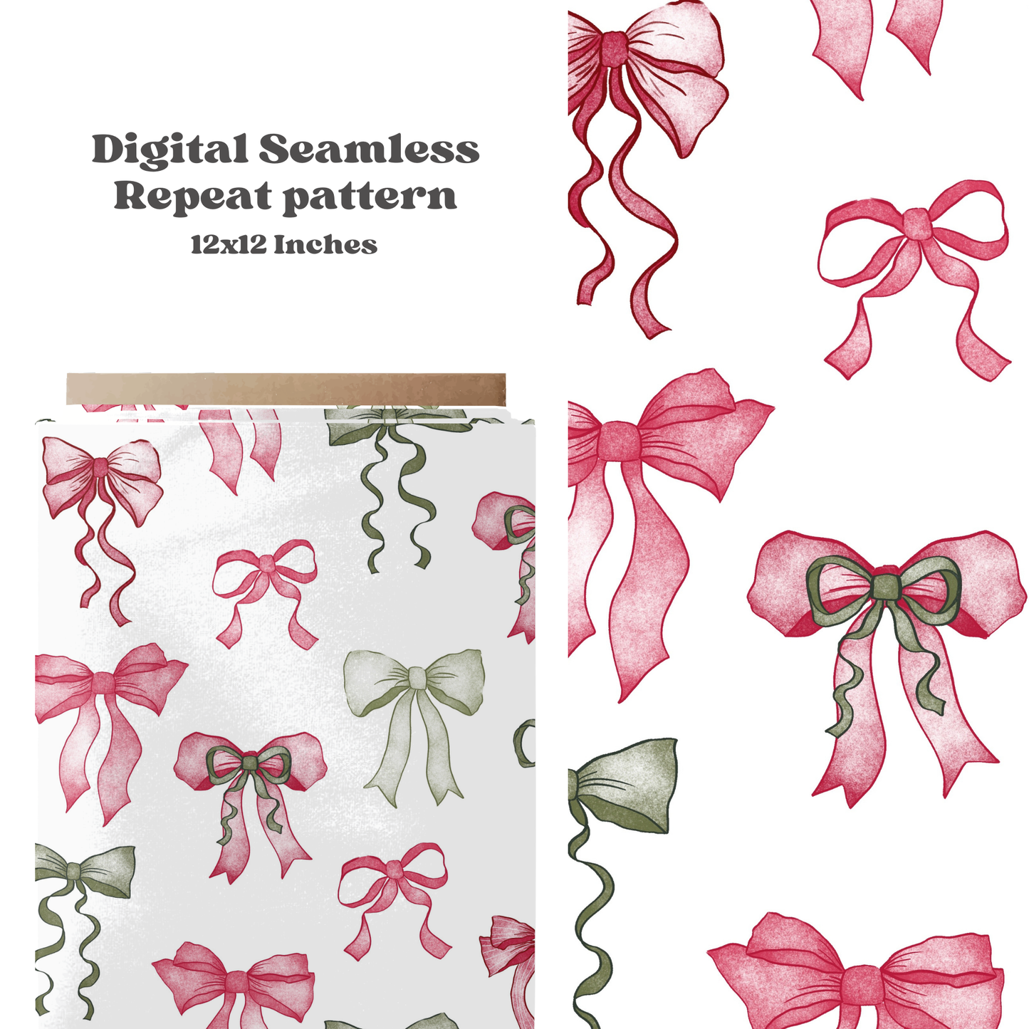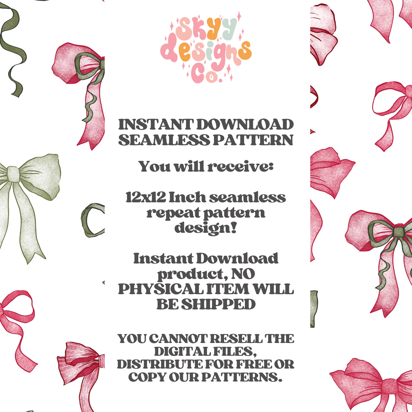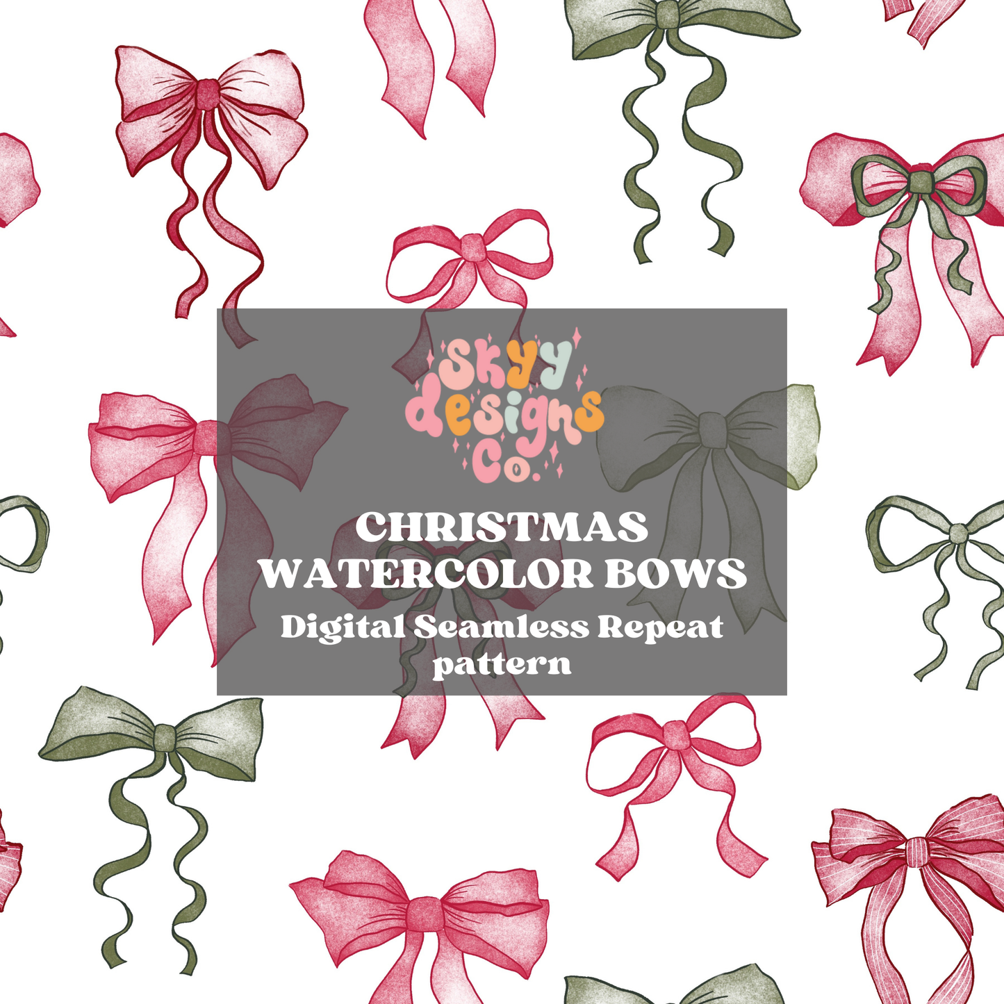 This Christmas, elevate your festive products with our watercolor bow pattern. With its seamless design, this JPEG format instantly adds a touch of holiday cheer to fabrics, wrapping paper, and more. Download now to elevate your Christmas themes with ease.
