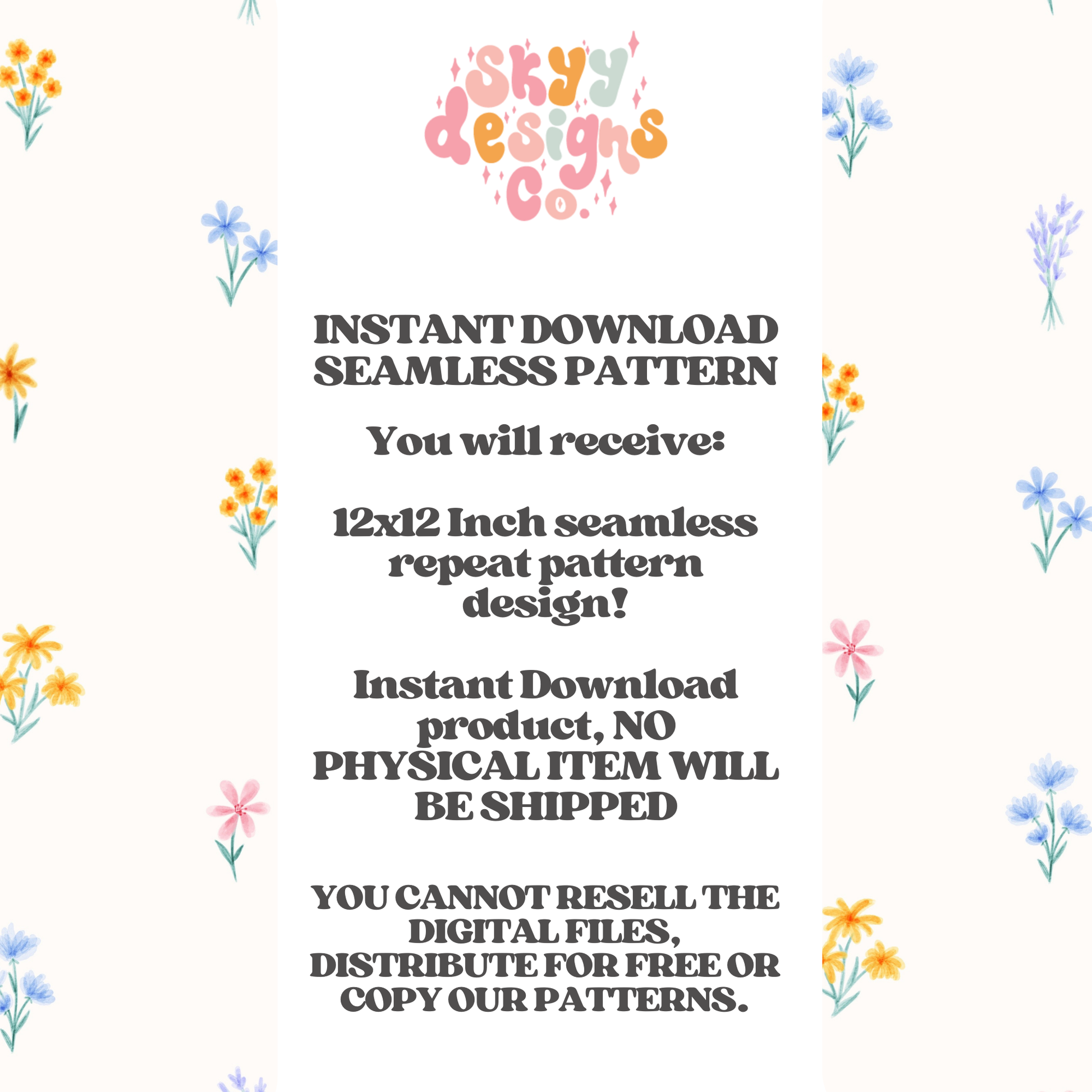 Transform your products with this delicate watercolor floral seamless pattern. Ideal for spring and summer collections, this instant digital download features soft, scattered blooms in a repeating design. Simply download and apply to any item—perfect for adding botanical charm to apparel, home goods, packaging, and more.