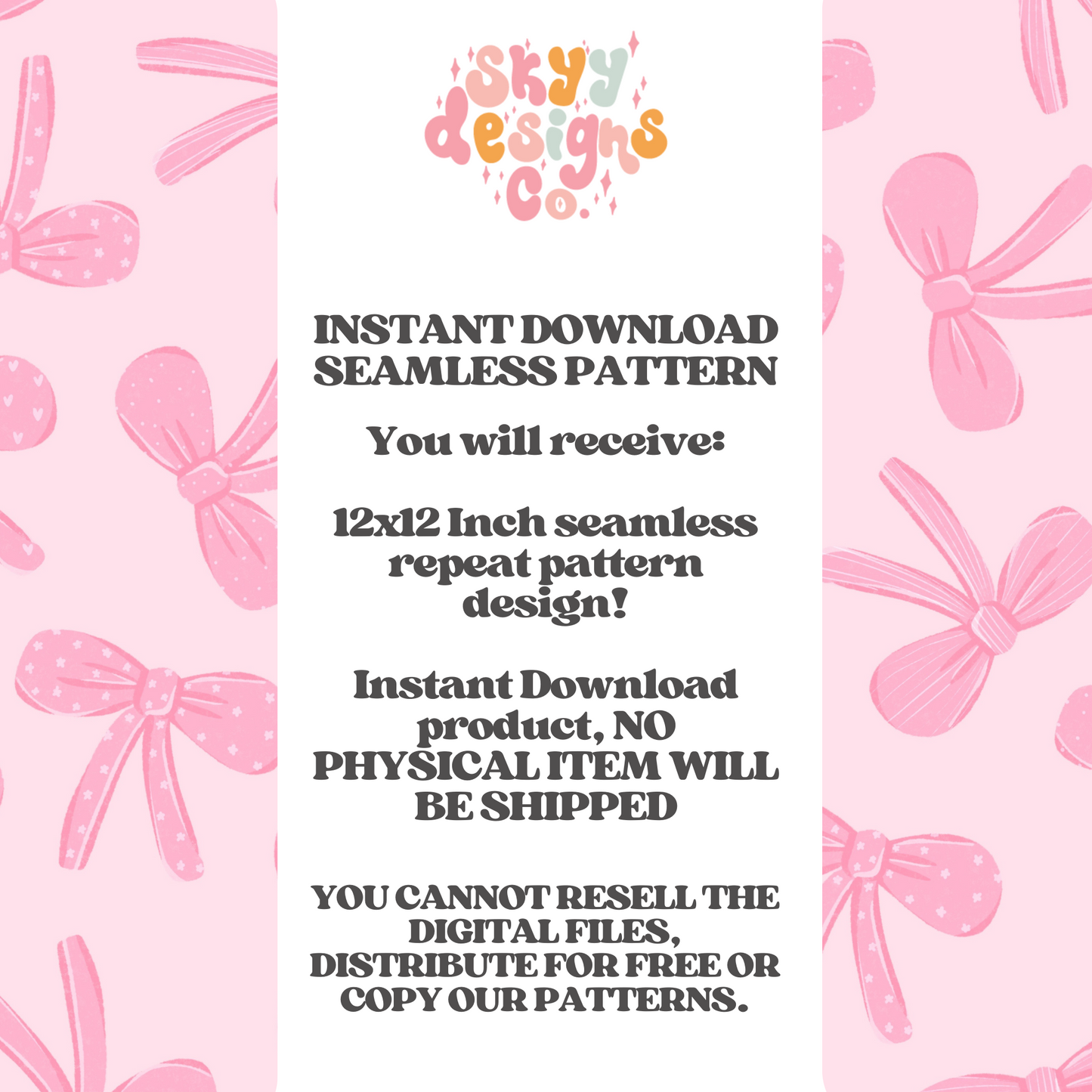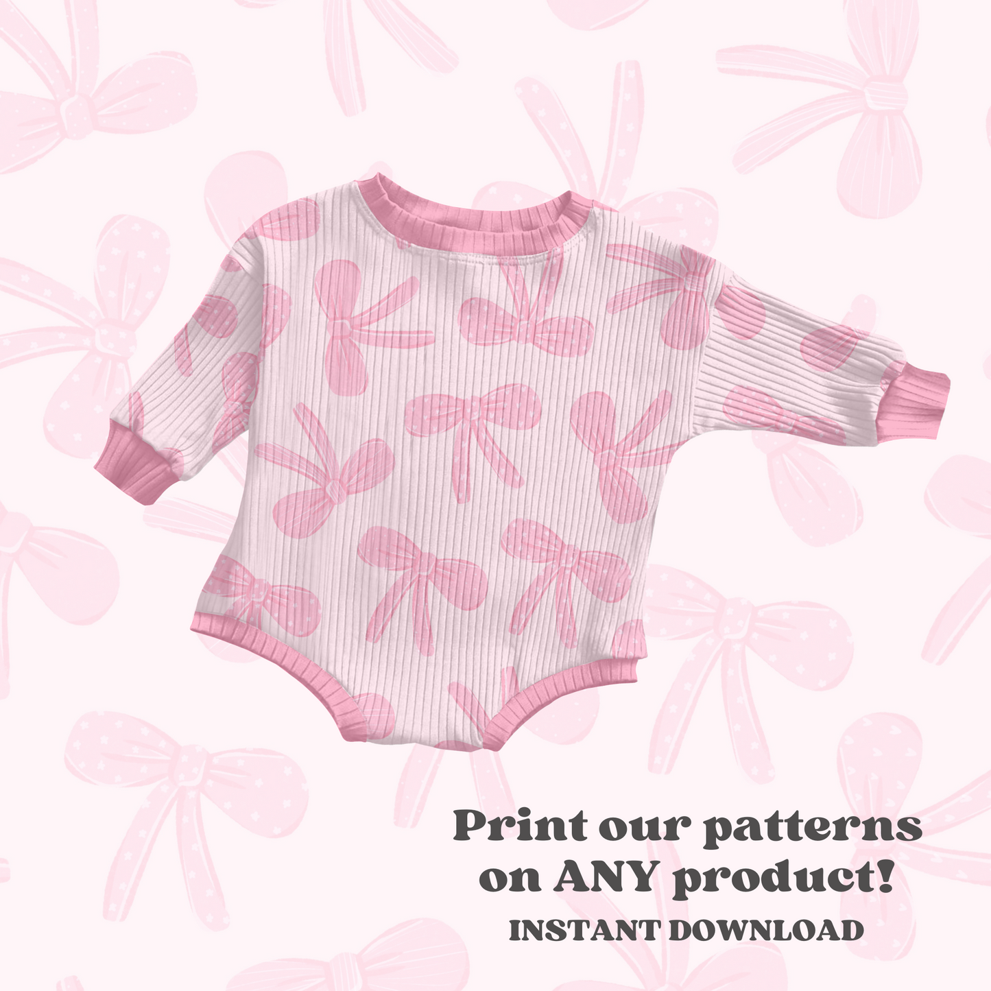 Looking for a cute and feminine touch to your products? Download our high-quality Girly Pink Bows pattern in JPEG format. Perfect for the coquette bow aesthetic, this versatile pattern can be printed and placed on any product.
