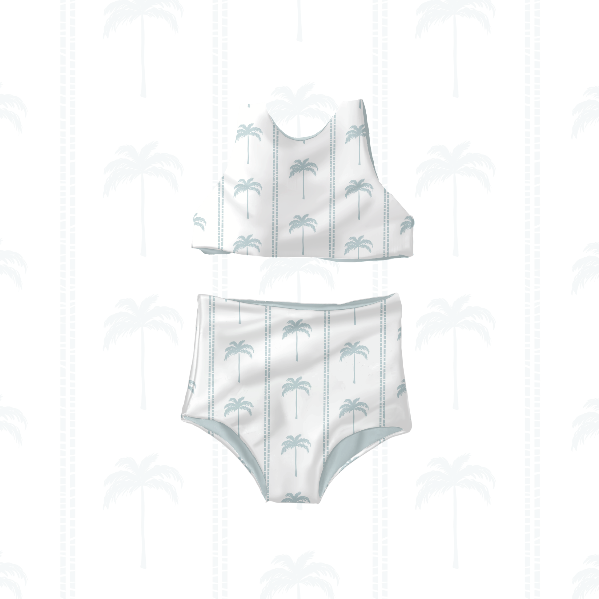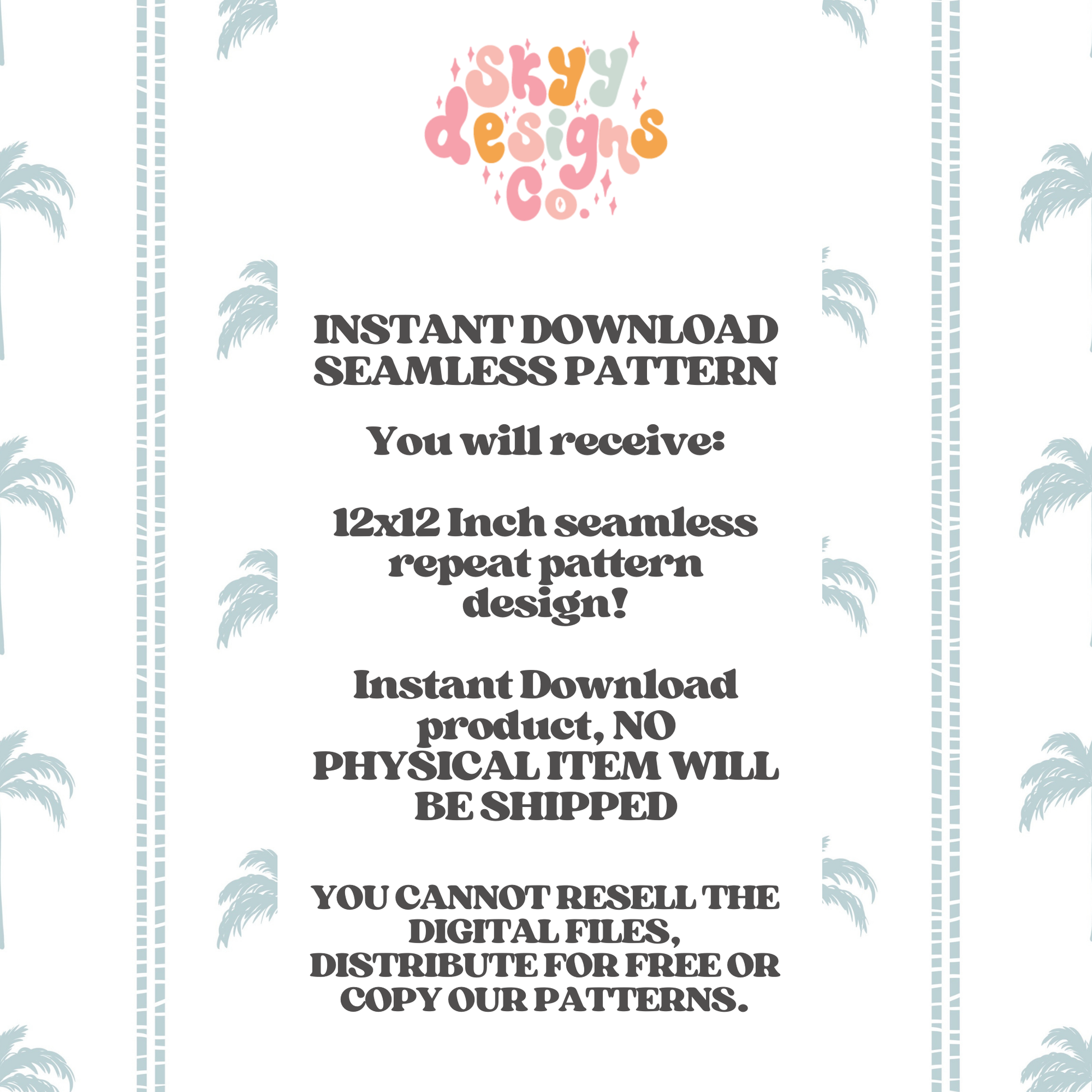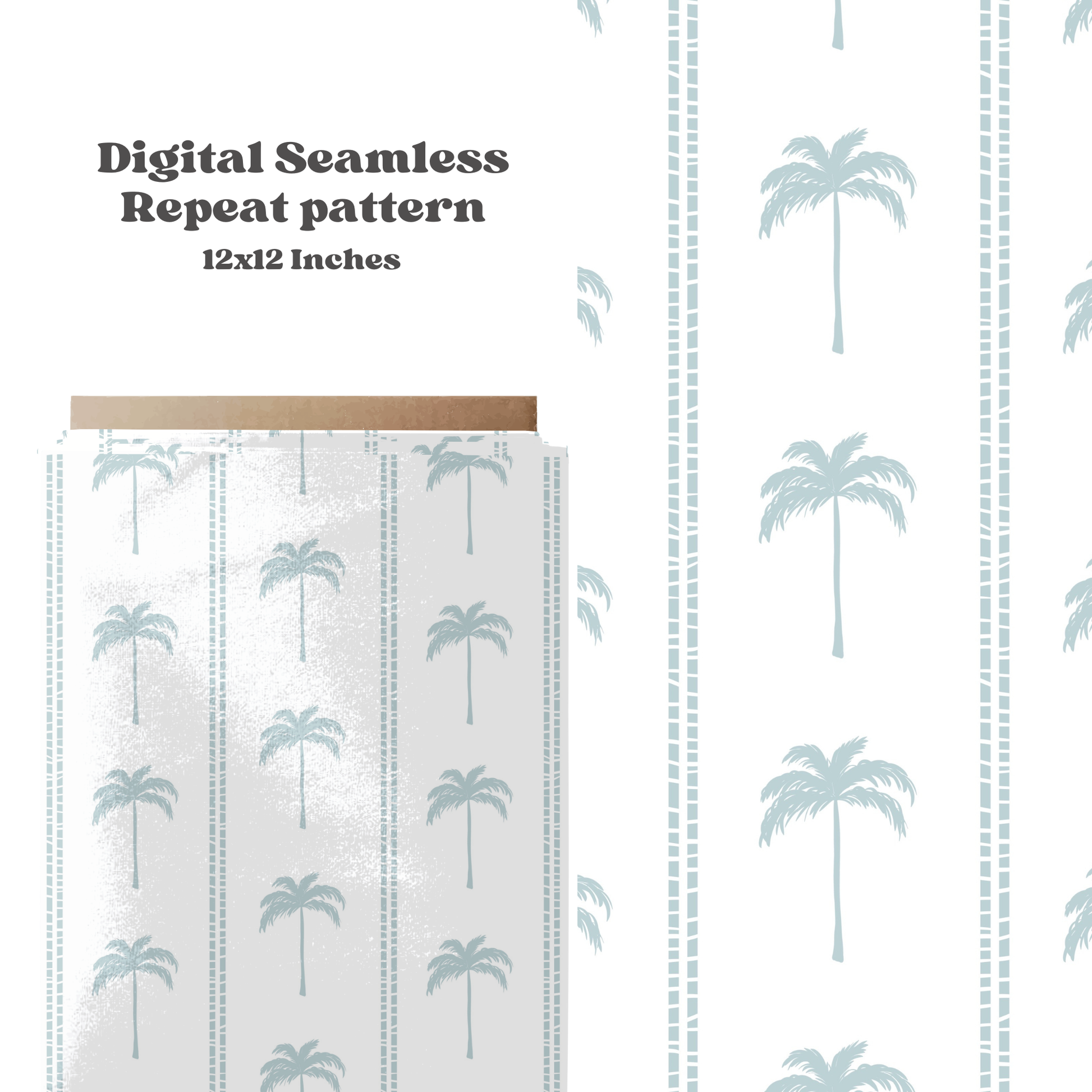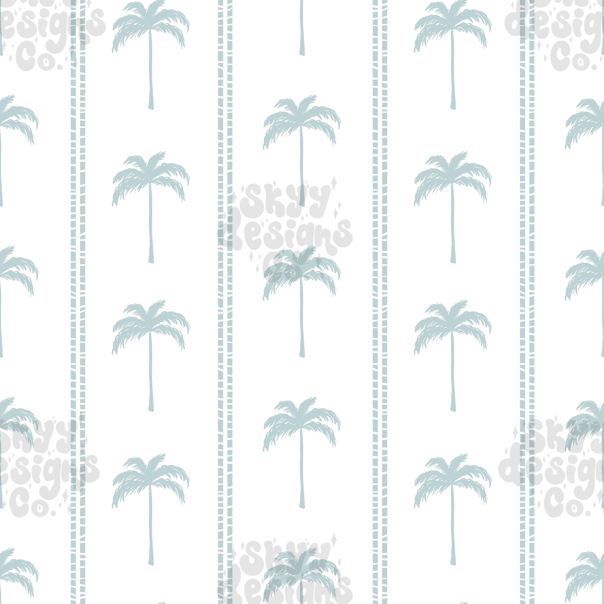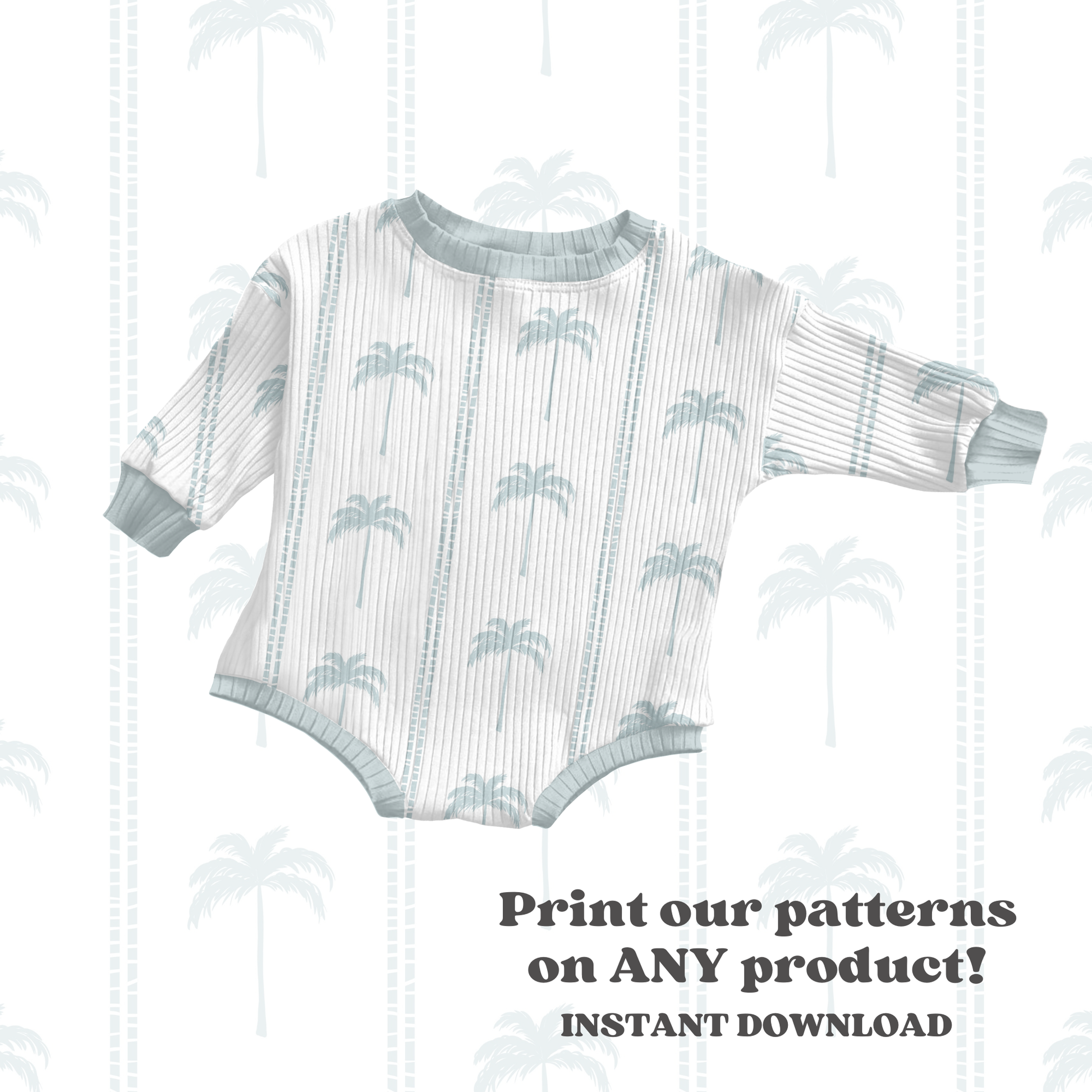 Add seasonal charm with the Muted Palms digital seamless pattern. This versatile design pairs gentle blue palm trees with striped accents, offering instant download capability for quick application to any product. Use across clothing, accessories, and more to create a polished, cohesive summer line for boys or girls!
