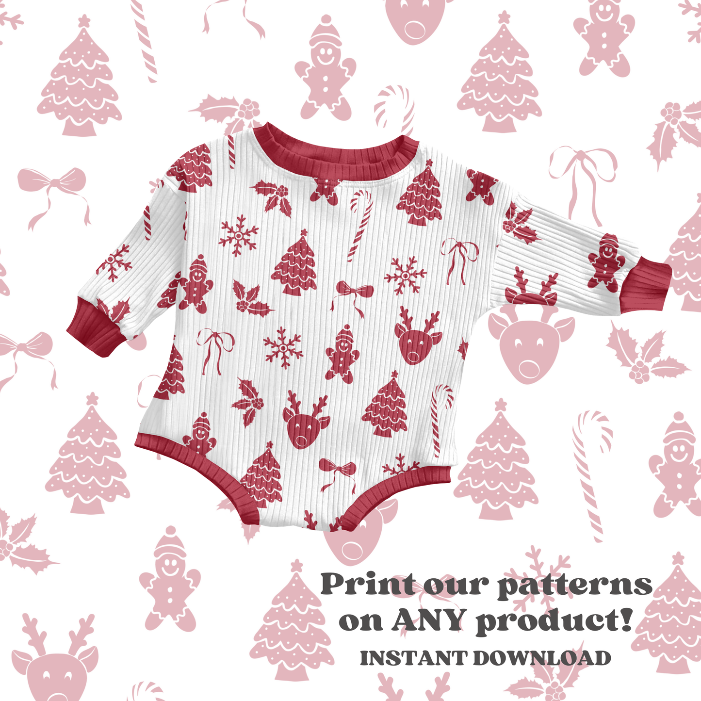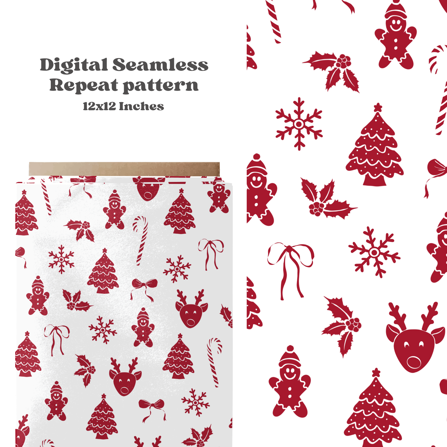 Create a festive atmosphere with our Monochrome Christmas Seamless Pattern. Featuring red monochrome Christmas elements, this digital seamless pattern design is perfect for printing on any product. Add some holiday cheer to your items and bring joy to your customers this Christmas season.