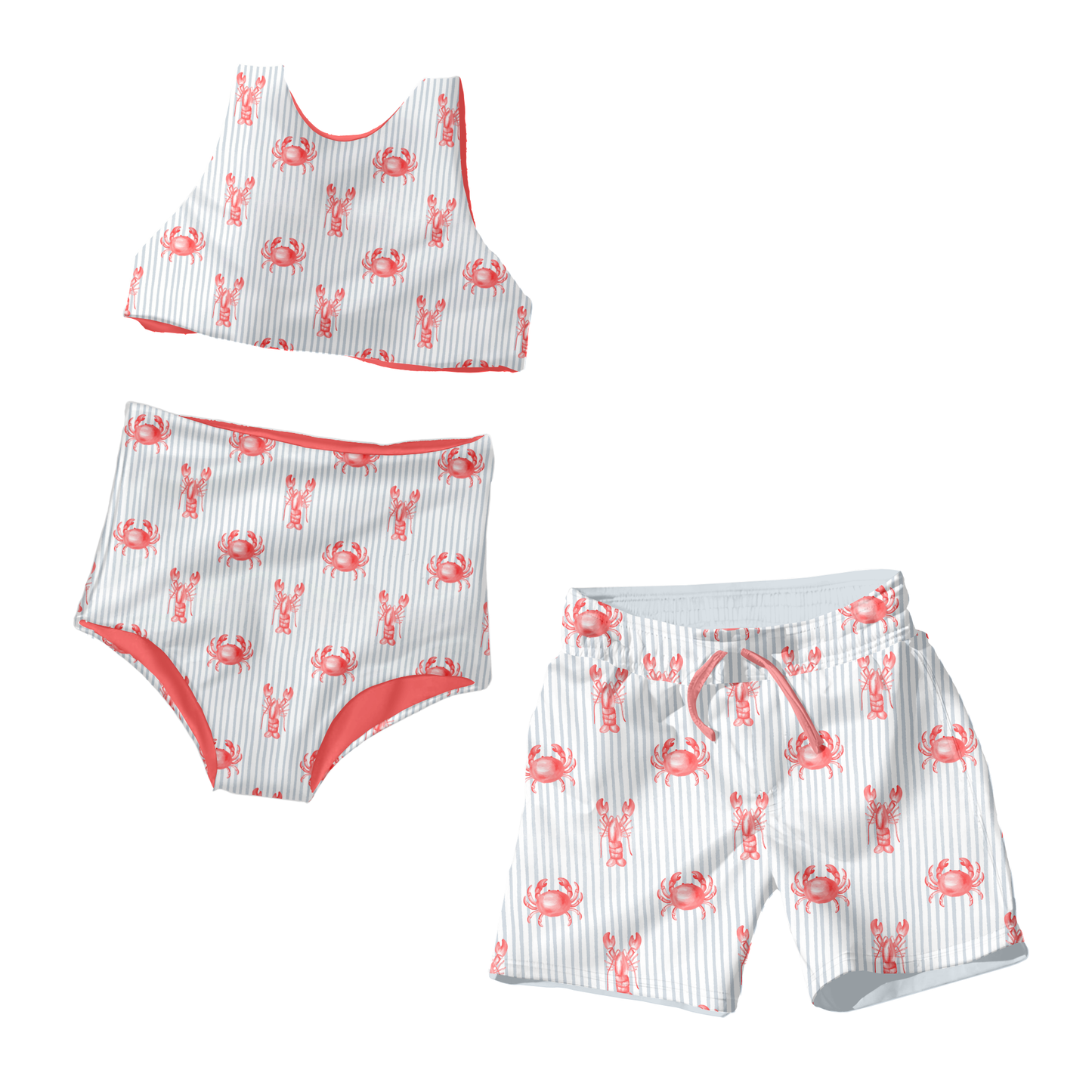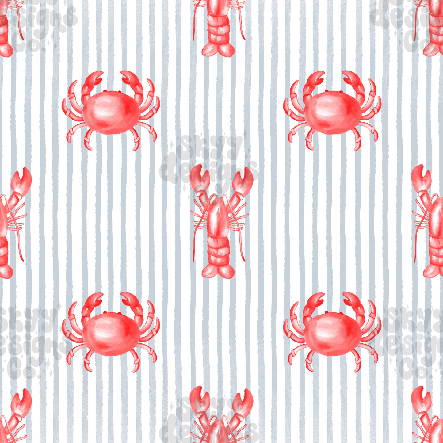 Nautical Muted Lobster Crab Stripe