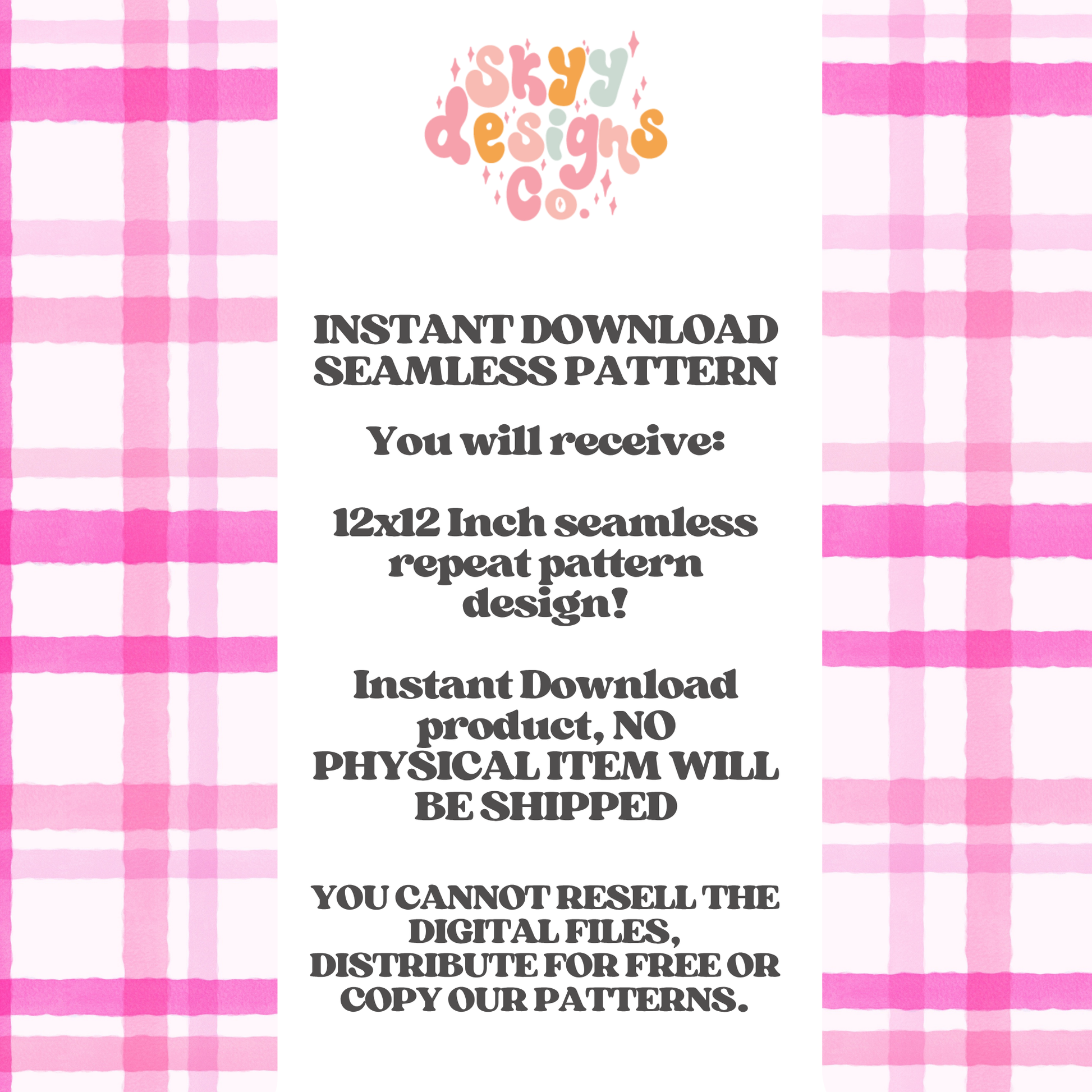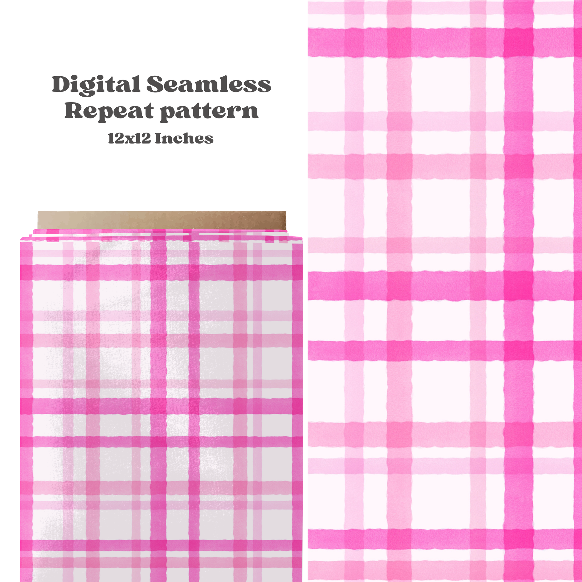 Pink Watercolor Plaid digital seamless pattern design ready for instant download. This versatile pattern features soft watercolor effects blended with classic plaid styling, making it ideal for customizing products year-round. Perfect for apparel, home décor, packaging, and more. Apply to any project and bring a touch of artistic elegance to your designs. Download now and start creating.