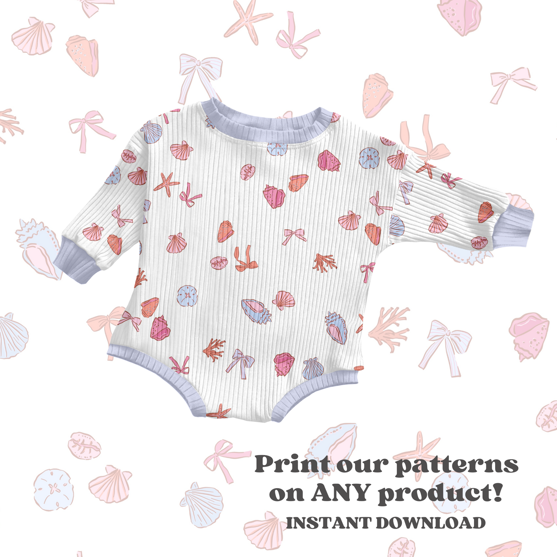 This seamless pattern design features charming preppy seashells, starfish, and bows, perfect for adding a fresh summer vibe to any product. Delivered in high-quality JPEG format, it’s ready for instant download and easy application to your favorite items. Ideal for seasonal projects, this pattern brings a playful yet stylish touch to your creations.
