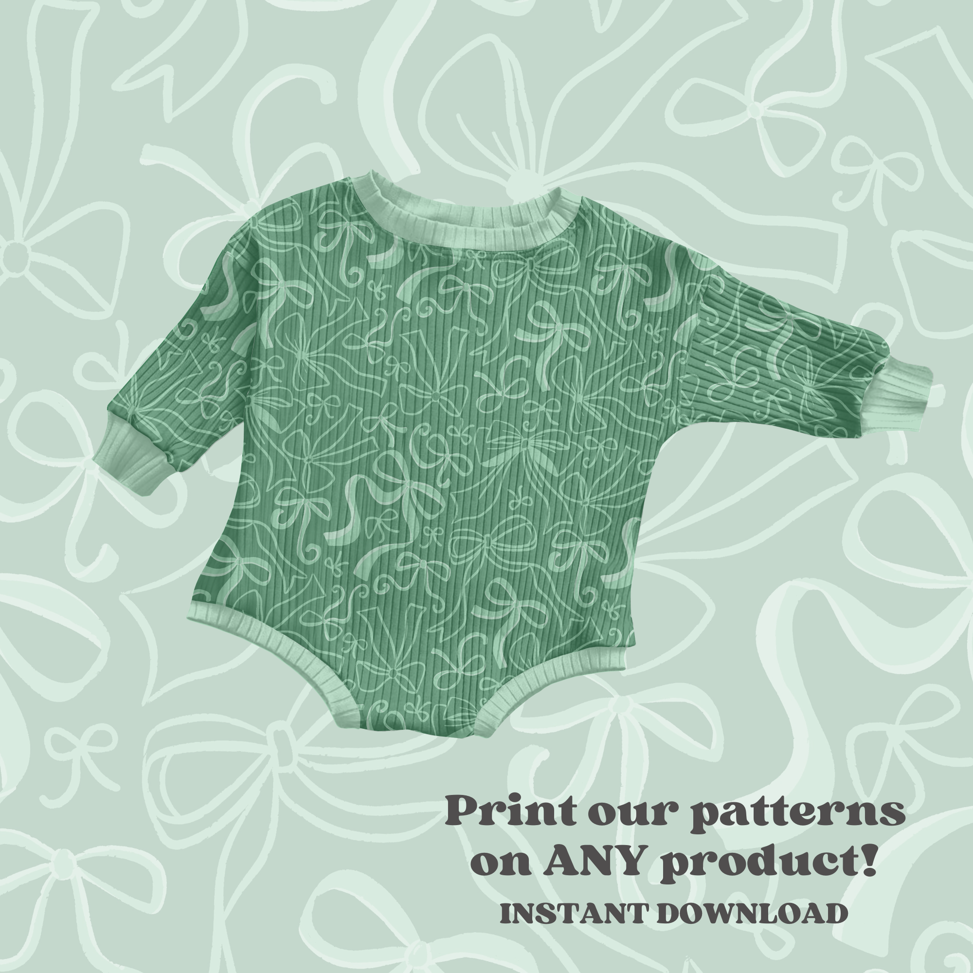 Make your St. Patrick's Day products stand out with this delightful digital seamless pattern. Bursting with charming coquette bows in bright green against a moody dark green backdrop, this instant download is ready to use right away. Seamlessly apply it to apparel, accessories, stationery, or print-on-demand items to create eye-catching seasonal designs. Perfect for adding feminine flair to your holiday collection.